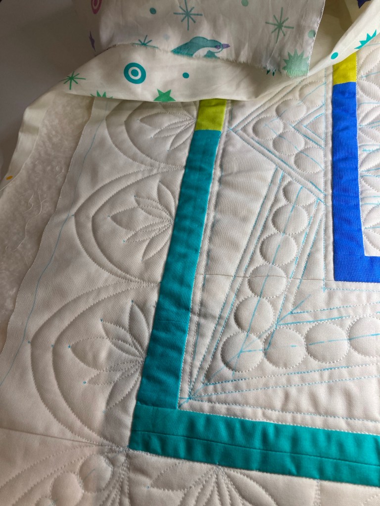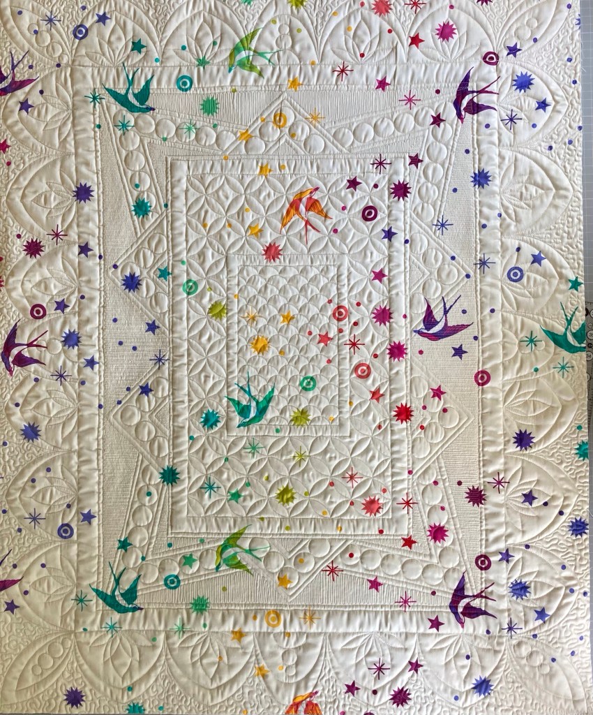 Na het quilten van de bloemen is het tijd om de lege ruimtes op te vullen….