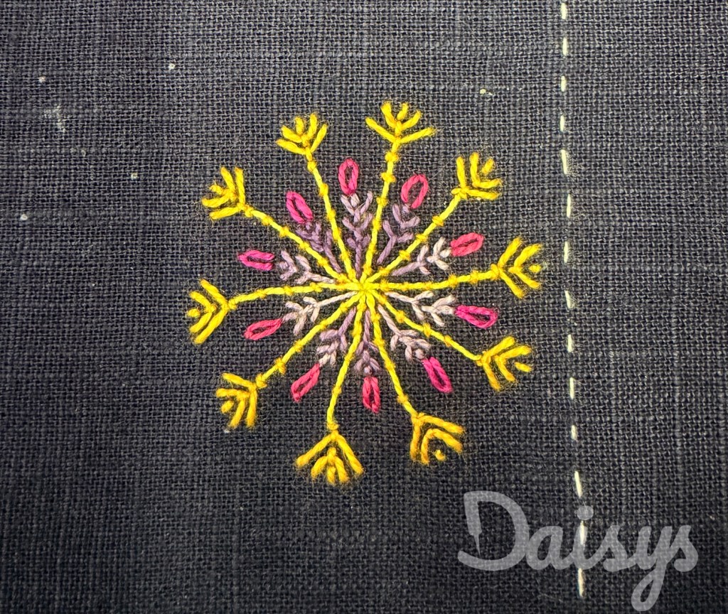 We startten met een bloem met tien ‘spaken’, die langzaam wordt opgebouwd.