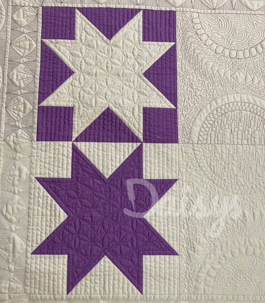 Altijd al een quilt van het begin tot het eind onder begeleiding willen quilten? Met behulp van 3 quiltrulers/linialen en freemotion quilten maak je deze mooie ‘Stars on the Horizon’, een eigen ontwerp van Vera voor Atelier Daisys Longarm