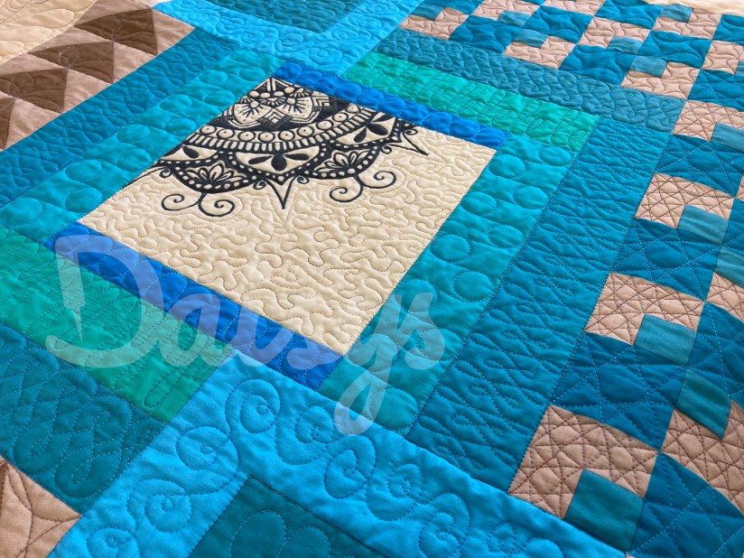 Prijs: € 295,- (inclusief 2 quiltpanelen ter waarde van € 65,-, exclusief de proeflappen en tussenvulling)