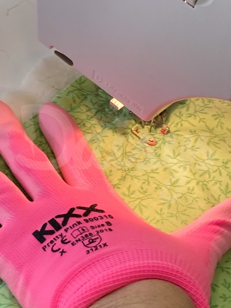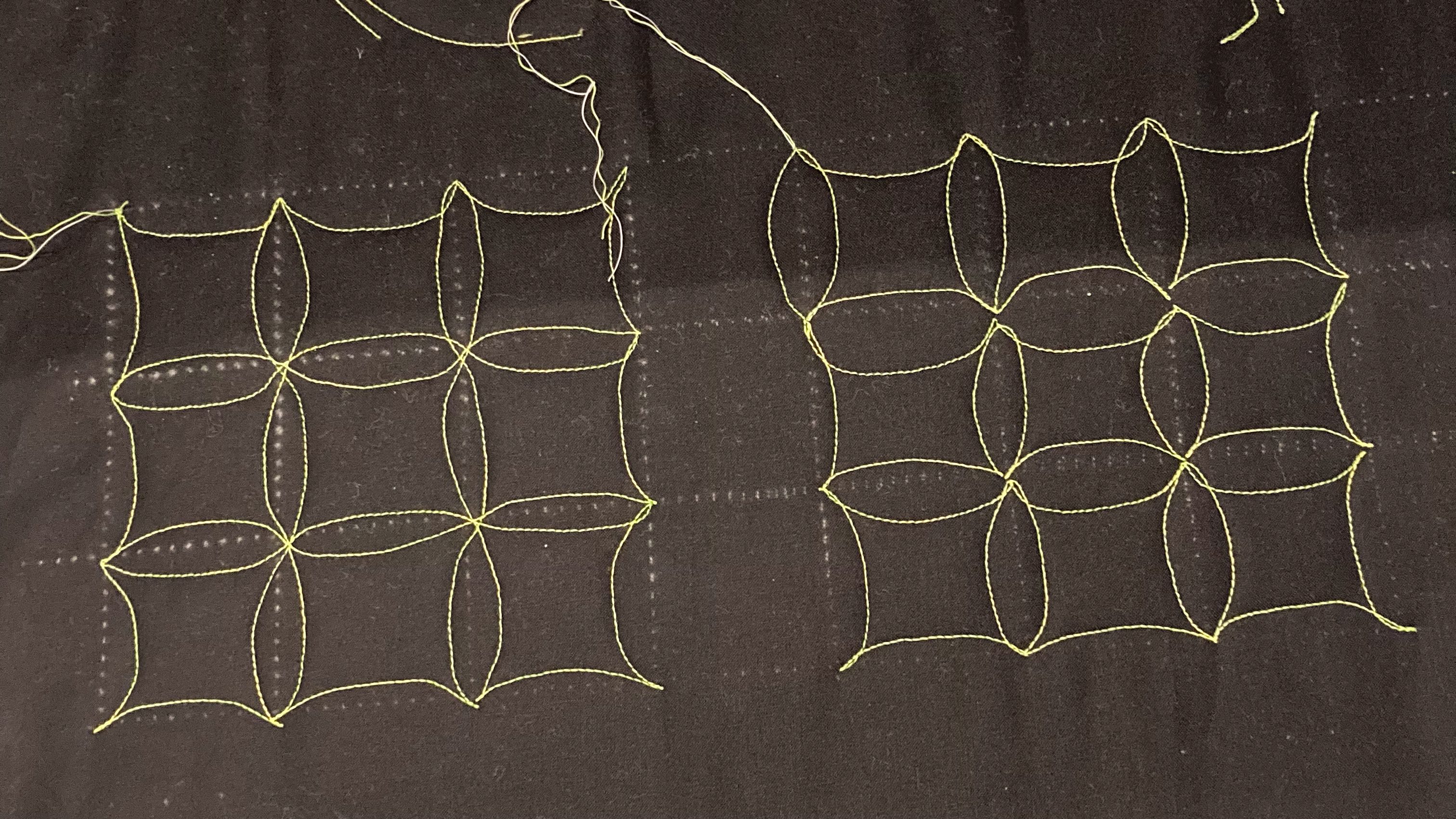 De quiltlijntjes zijn hier en daar nog een beetje bibberig, maar een willekeurige vorm opvullen, lukt al.