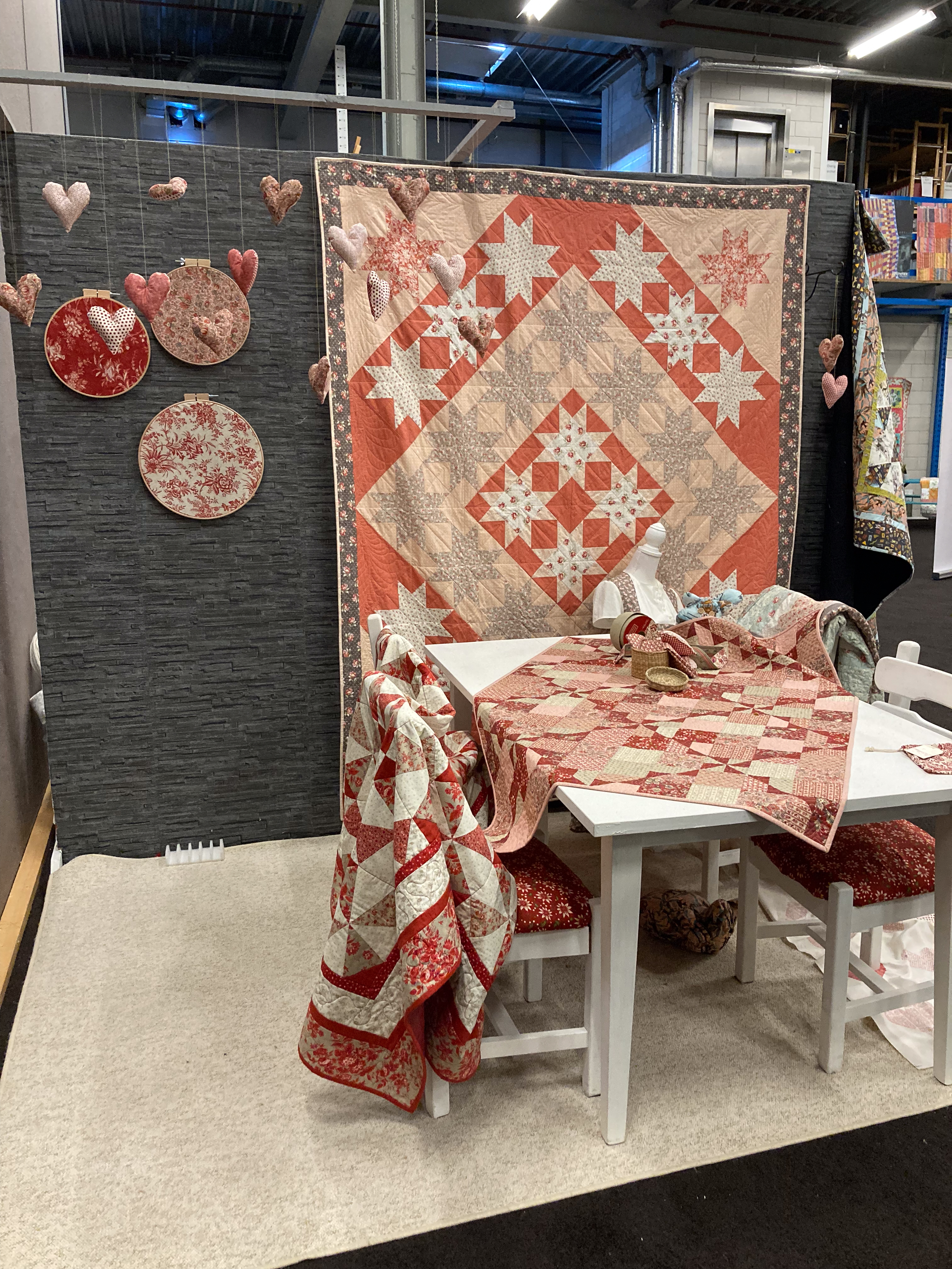 Er worden oude quilts uit de kast gehaald en aangevuld met quiltwerk dat ze hebben geleerd op de lessen….