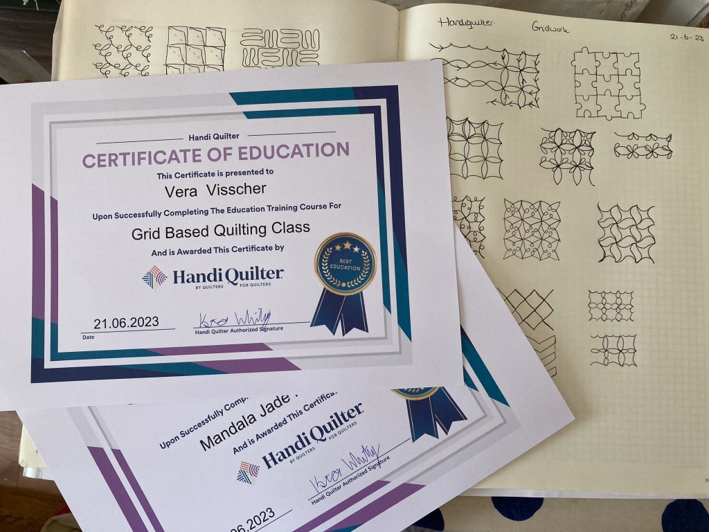 Na een inspirerende dag achter de longarm, een groepsfoto en twee certificaten, ging ik weer vrolijk naar huis.