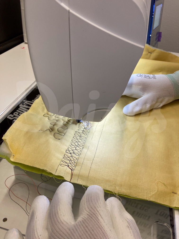 …. om uiteindelijk te oefenen met de naaimachine op de stof…