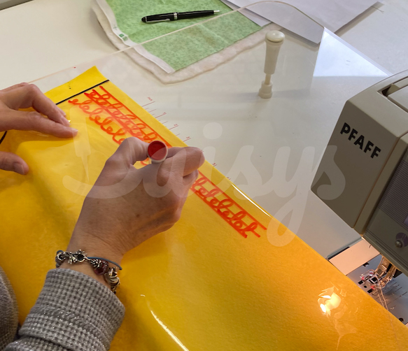 Hulplijnen tekenen op de stof…