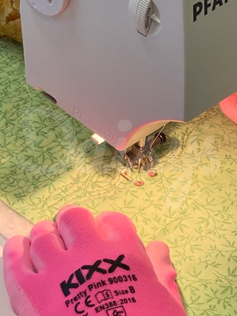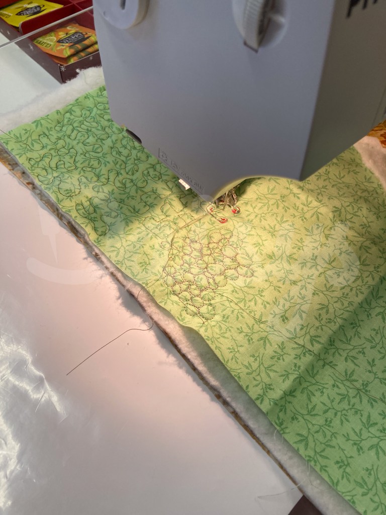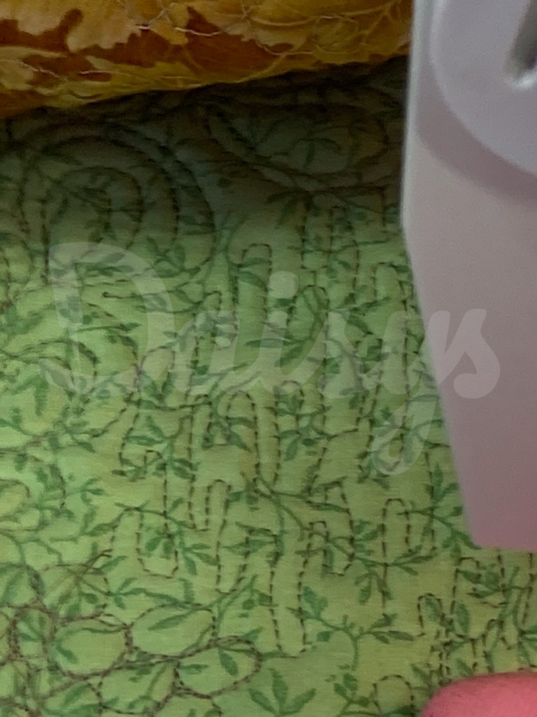 mooie gelijkmatige steken! ben benieuwd wat er nog meer gequilt wordt…