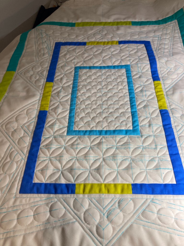 Maar nu verder met het verslag van vandaag… doel van vandaag: het afmaken van de Elysium-quilt. Is dat mij gelukt…..? ✅