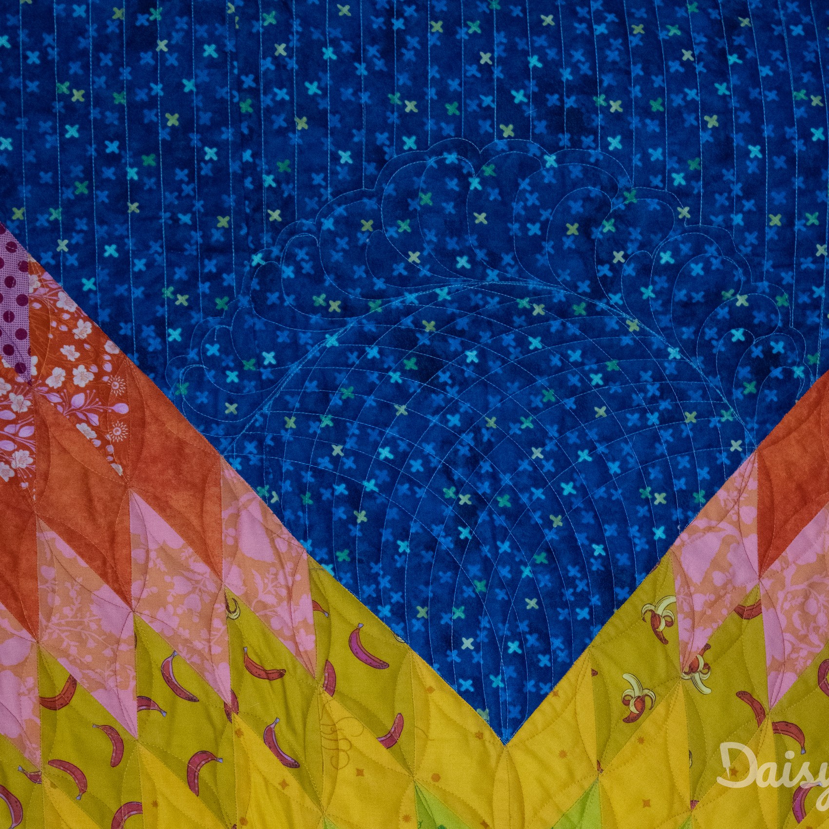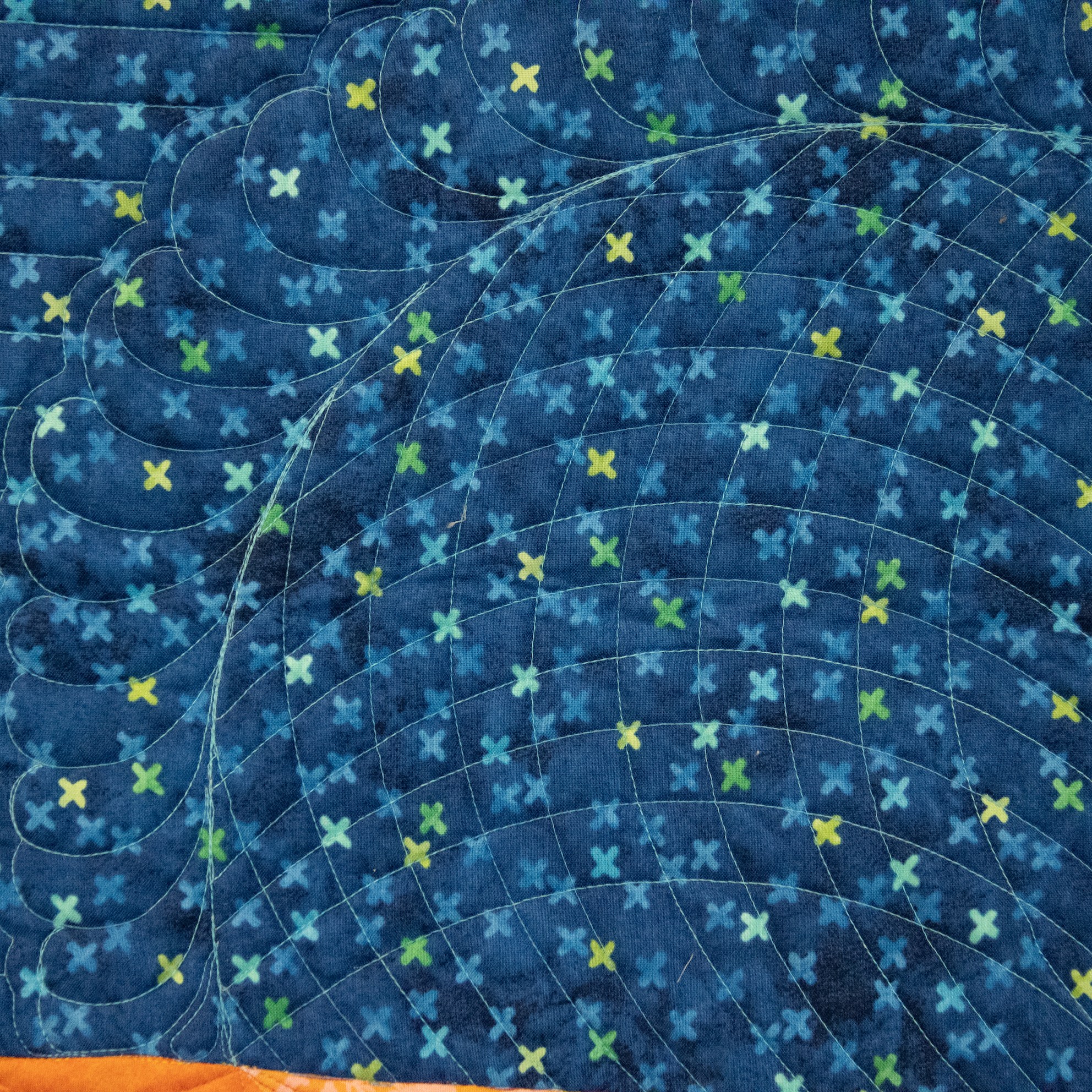 Ik heb al vaker quilts van Magda mogen quilten en weet dat ze een raster of pianostripe met een afstand van 0,75″ mooi vindt. 0,25″ is te smal en 1″ is te breed. ;p