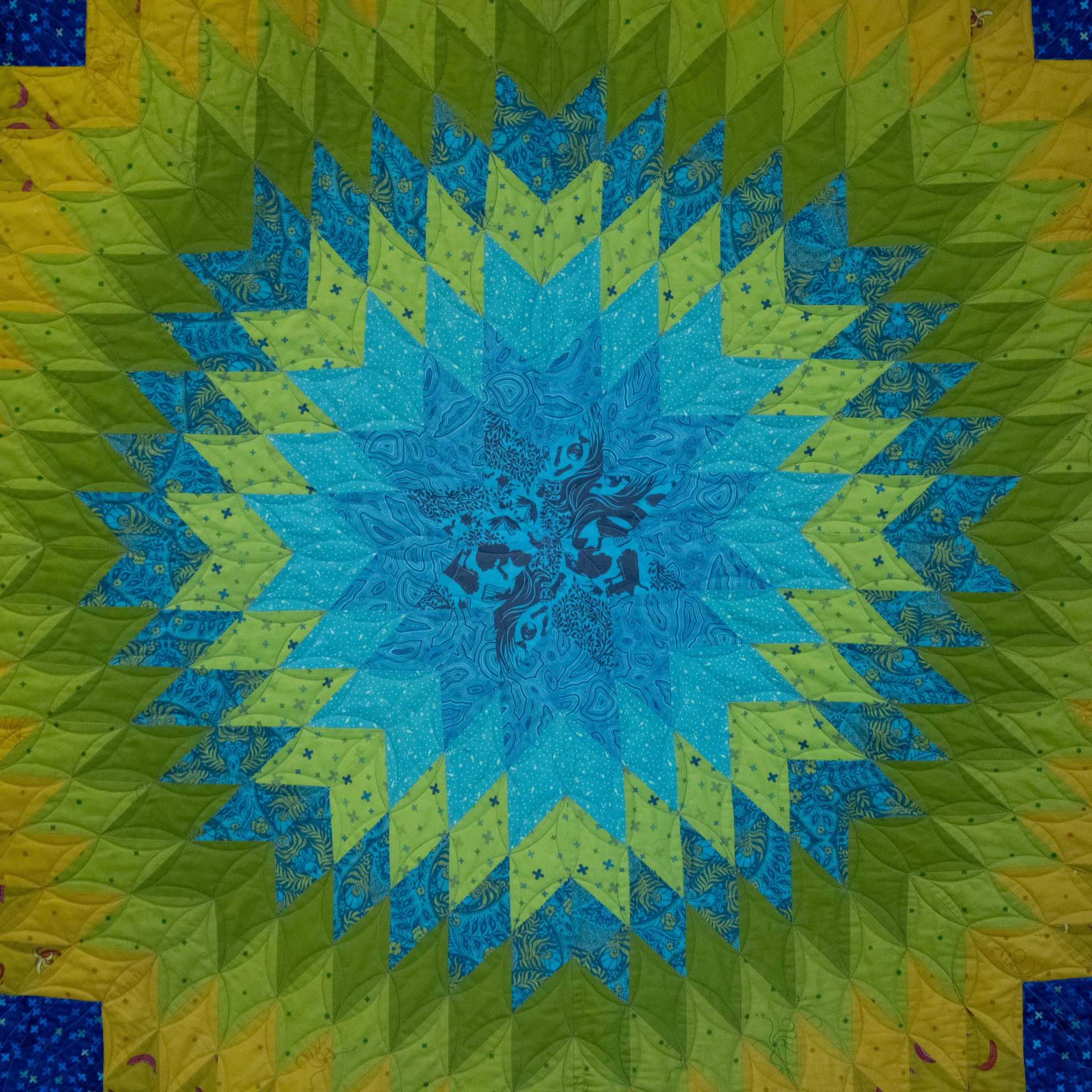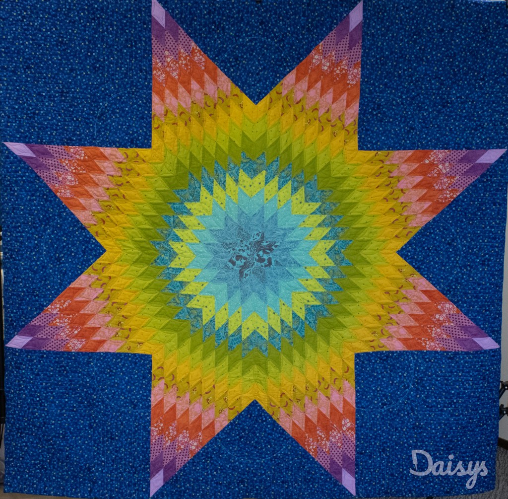 Na een drukke periode in december en januari, mocht ik vorige week weer een mooie quilt afleveren aan de eigenaar. De ‘Starburst’ naar het patroon van Tula Pink.